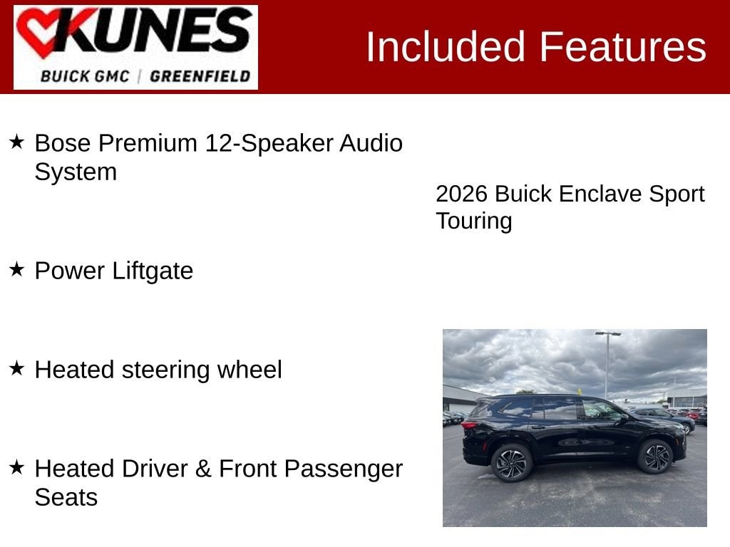 AWD, Bose Premium 12-Speaker Audio System, Heated Driver & Front Passenger Seats, Heated steering wheel, Power Liftgate. Ebony Twilight Metallic 2026 Buick Enclave Sport Touring AWD 8-Speed Automatic 2.5L DOHC