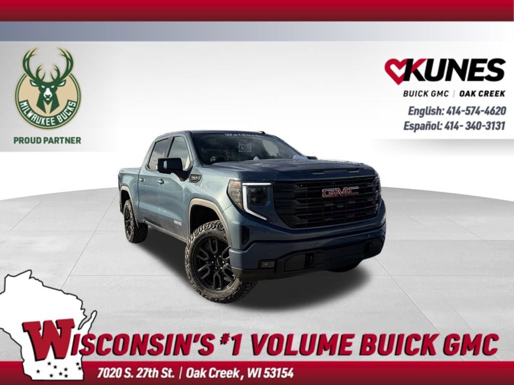 Downpour Metallic 2026 GMC Sierra 1500 Elevation 4WD 10-Speed Automatic EcoTec3 5.3L V8 10-Speed Automatic, 4WD, Black Leather, 120-Volt Bed Mounted Power Outlet, 120-Volt Interior Power Outlet, 2 Charge/Data USB Ports, 2 Type-C Charge-Only Rear USB Ports, 6-Speaker Audio System Feature, 6 Rectangular Black Tubular Assist Steps (LPO), Adaptive Cruise Control, All-Weather Floor Liner (LPO), Auto-Locking Rear Differential, Body Color Header w/Gloss Black Mesh Grille Bars, Cloth Rear Seat w/Storage Package, Color-Keyed Carpeting Floor Covering, Deep-Tinted Glass, Dual Exhaust System, Electric Rear-Window Defogger, Elevation Premium Package, Front Frame-Mounted Black Recovery Hooks, Front Rubberized-Vinyl Floor Mats, HD Rear Vision Camera, HD Surround Vision, Heavy-Duty Air Filter, High Capacity Suspension Package, High Gloss Black Mirror Caps, Hill Descent Control, Hitch Guidance, Hitch View, In-Vehicle Trailering System App, Integrated Trailer Brake Controller, Leather-Appointed Seat Trim, LED Cargo Area Lighting, Navigation System, Off-Road Suspension, OnStar Services Capable, Perimeter Lighting, Power Door Locks, Power Front Windows w/Driver Express Up/Down, Power Front Windows w/Passenger Express Down, Preferred Equipment Group 3SB, Preferred Package, Premium Bose 7-Speaker Sound System, Push Button Start, Rear Cross Traffic Braking, Rear Pedestrian Detection, Rear Rubberized-Vinyl Floor Mats, Rear Wheelhouse Liners, Remote Vehicle Starter System, Sierra Safety Plus Package, Steering Wheel Audio Controls, Theft Deterrent System (Unauthorized Entry), Trailer Camera Provisions, Trailer Side Blind Zone Alert, Trailering Package, Ultrasonic Front & Rear Park Assist, Universal Home Remote, Up-Level Rear Seat w/Storage Package, Wi-Fi Hotspot Capable, X31 Hard Badge, X31 Off-Road Package.