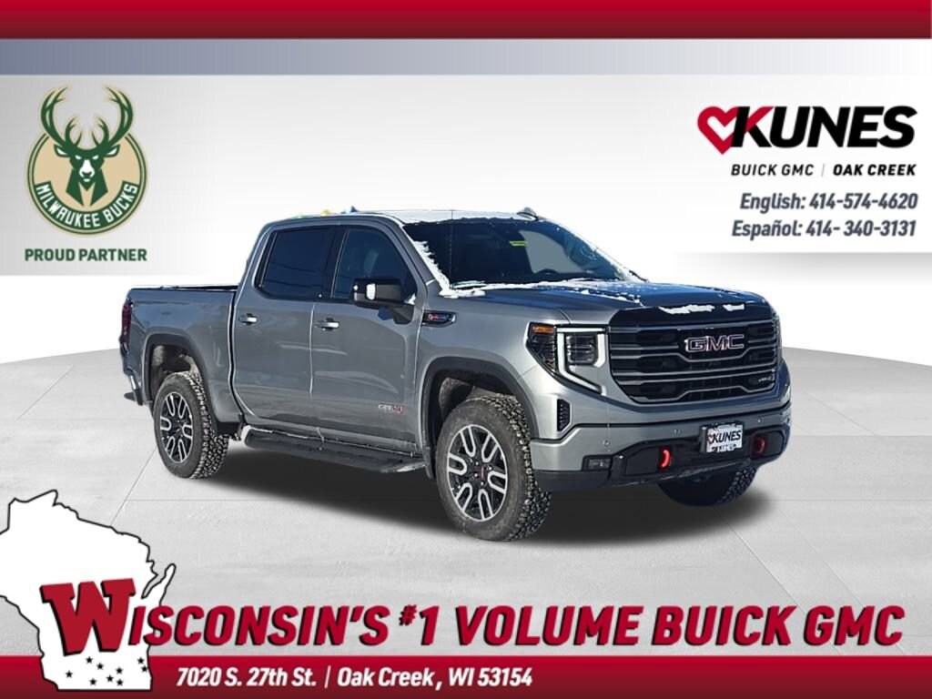 Sterling Metallic 2026 GMC Sierra 1500 AT4 4WD 10-Speed Automatic EcoTec3 6.2L V8 10-Speed Automatic, 4WD, Jet Black With Kalahari Accents Leather.Recent Arrival!Also included with every new vehicle we sell: LIFETIME NO FEAR WARRANTY, FIRST OIL CHANGE, and AT HOME COURTESY DELIVERY! Call us for full details! We pride ourselves on honesty and integrity, but please note that mistakes or misprints due to human error are possible. Find out why our dealerships have won DealerRater.com DEALER OF THE YEAR a whopping 10 TIMES! Call, email, or live chat with one of our friendly sales professionals now to schedule your test drive! Prices shown do not include tax, title, registration and $599 service fees. Price includes: $1750 - Buick & GMC Consumer Cash Program. Exp. 03/02/2026 $500 - Buick GMC Bonus Cash. Exp. 03/02/2026 Price Includes: $3500 - Kunes Special Offer. Exp Exp. 03/02/2026