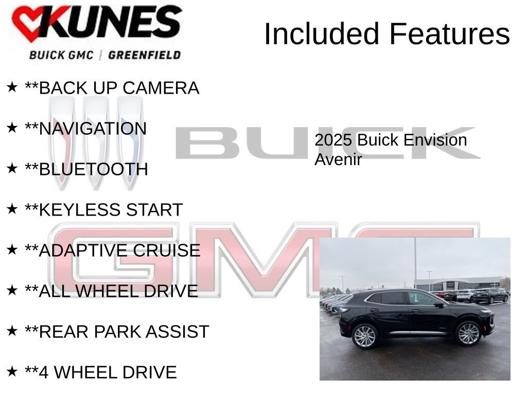 Researched 6 different competing compact luxury SUVs. Kept coming back to the Buick Envision Avenir. It looks great, descent gas mileage, nice interior, has quiet tuning and rides well. All at a lower price than the German alternatives. Built on a Cadillac XT4 frame and suspension with enhancements. It also received the Cadillac 2.0 L Turbo engine and 9 speed transmission that always puts the engine in the sweet spot of its torque curve. Also uses regular gas. A pleasure to drive. Buick hit a home run with this car.… - 5.0