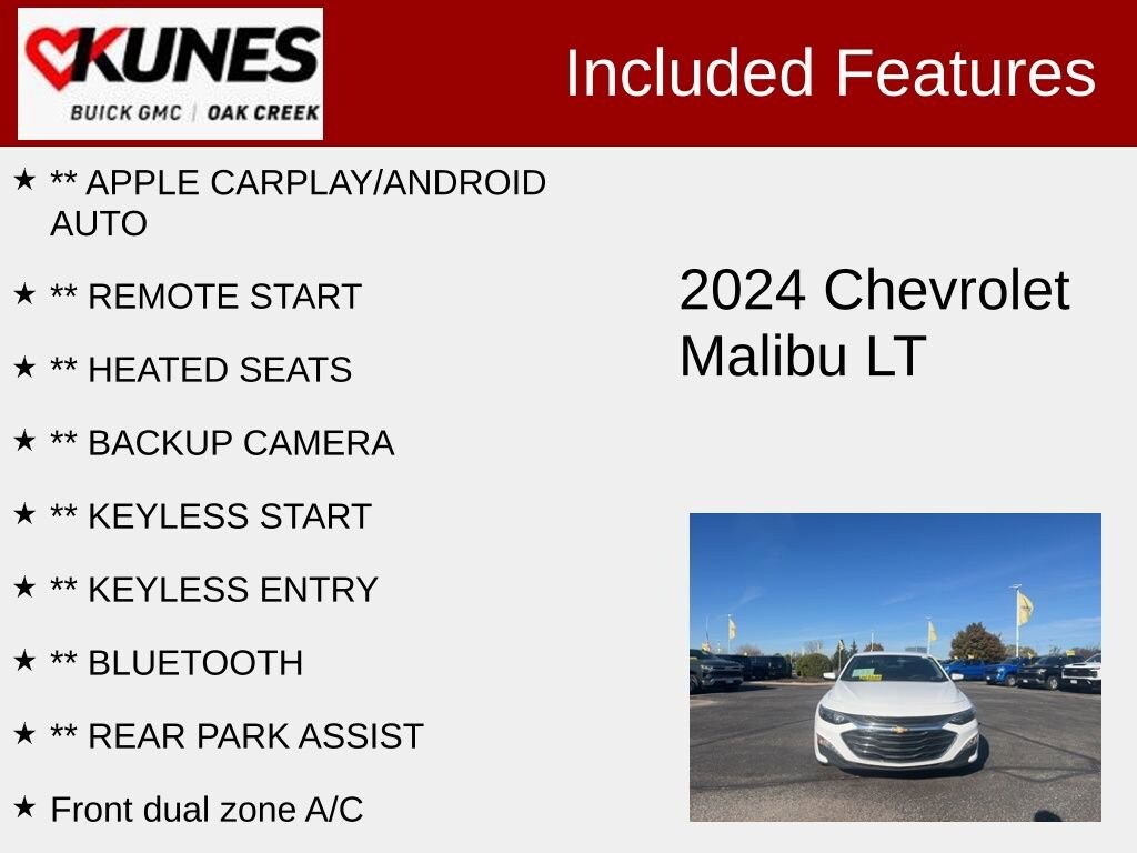 2024 Chevrolet Malibu LT 1LT Summit White FWD 1.5L DOHC