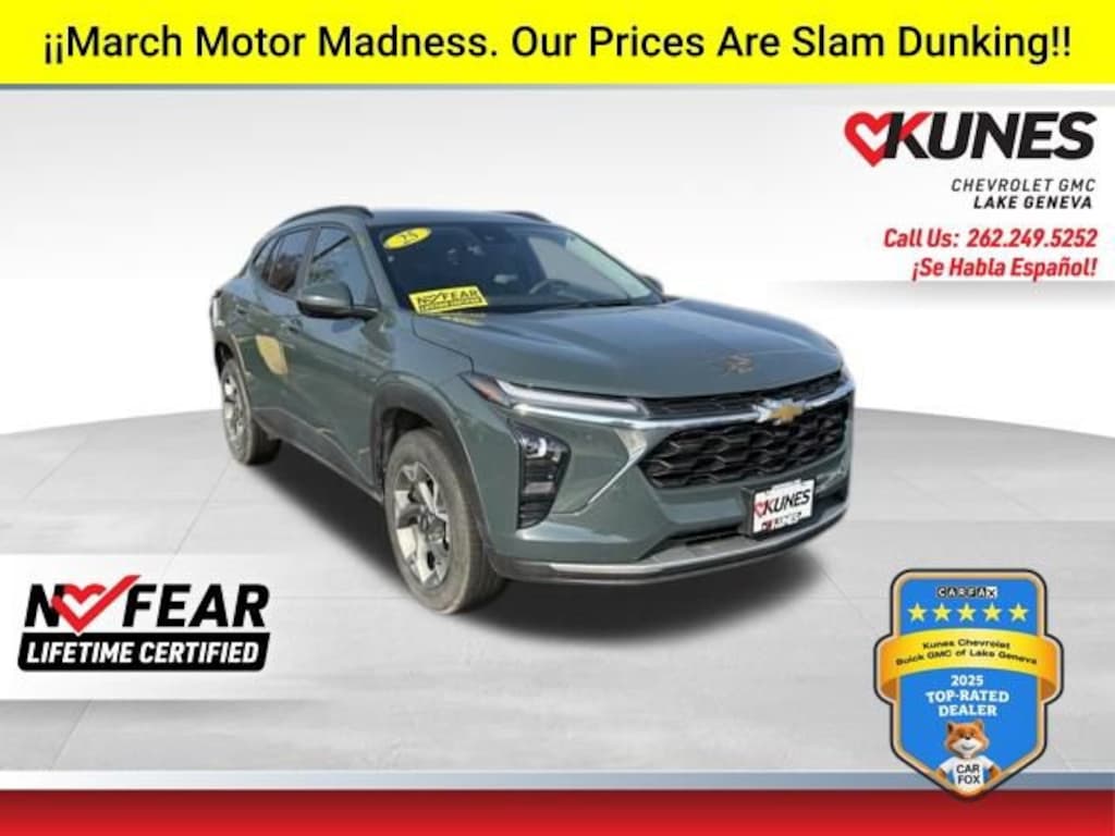 Recent Arrival! 2025 Chevrolet Trax LT Cypress Gray 1.2L I3 DI Turbocharged DOHC 12V LEV3-ULEV70 137hp FWD 6-Speed AutomaticCARFAX One-Owner. Clean CARFAX.Certification Program Details:** NO FEAR LIFETIME CERTIFIED PREOWNED **Over $2,895 of value at no cost!*LIFETIME WARRANTY!*3 Day Exchange Policy!*Complimentary powertrain warranty with ability to upgrade to fully comprehensive coverage and/or extend up to 125,000 miles!*125+ Point Inspection by our factory trained ASE Certified technicians and reconditioned to the highest standards.*Complimentary AutoCheck History Report*Complimentary AutoCheck Buyback Protection*Financing for Everyone - Guaranteed credit approval regardless of credit history!*Over 30 lenders who compete to get you the best financing terms*No payments for up to 90 days!*Weekly, Bi-Weekly, and Monthly Payment Options for all buyers!*First Free Oil Change!*Trade anytime policy - cars, trucks, boats, RVs, motorcycles - as long as we donât have to feed it, you can trade it!** APPLE CARPLAY/ ANDROID AUTO, ** REMOTE START, ** BACKUP CAMERA, ** SMARTPHONE APP ENABLED, Preferred Equipment Group 1LT.Awards:* Car and Driver 10 BestCar and Driver, January 2017.Find out why our dealerships have won DealerRater.com DEALER OF THE YEAR a whopping 10 TIMES! Call, email, or live chat with one of our friendly sales professionals now to schedule your test drive! Prices shown do not include tax, title, registration and $599 service fees.