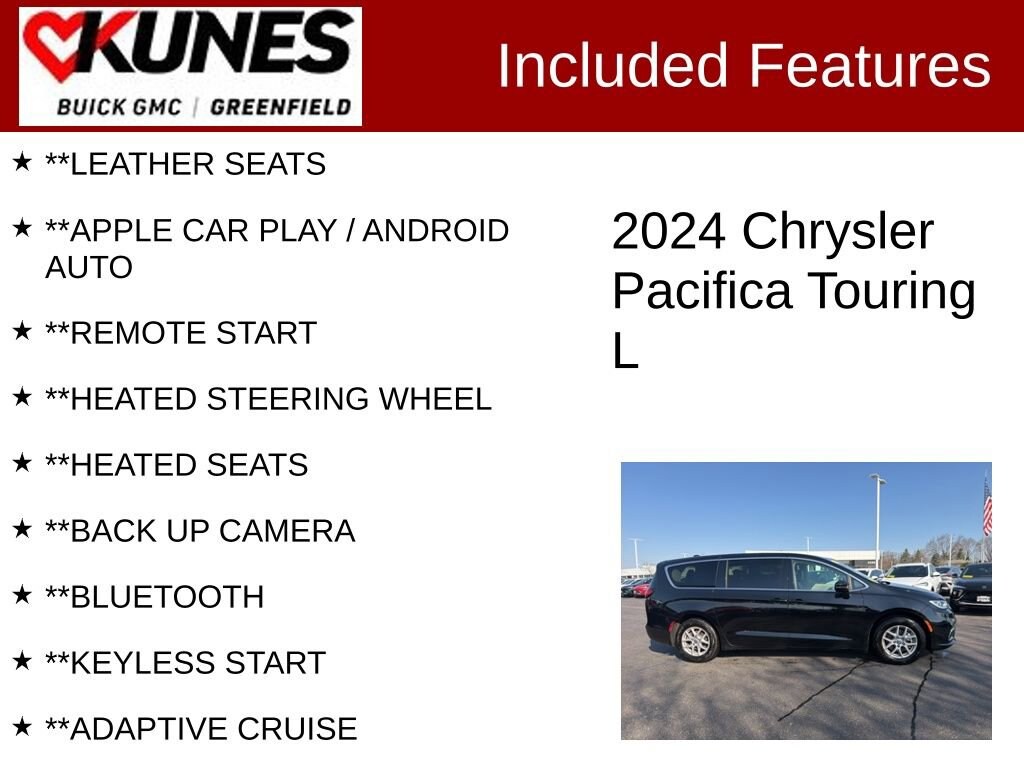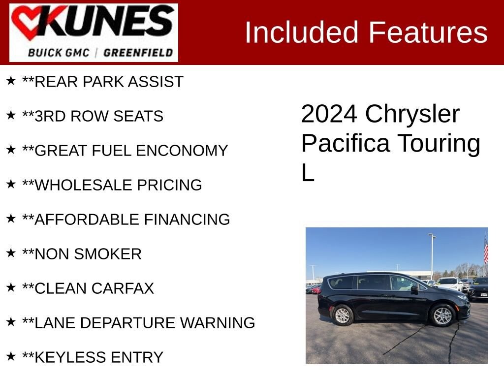 Diamond Black Crystal Pearlcoat 2024 Chrysler Pacifica Touring L 4D Passenger Van FWD 9-Speed 948TE Automatic 3.6L V6 24V VVT