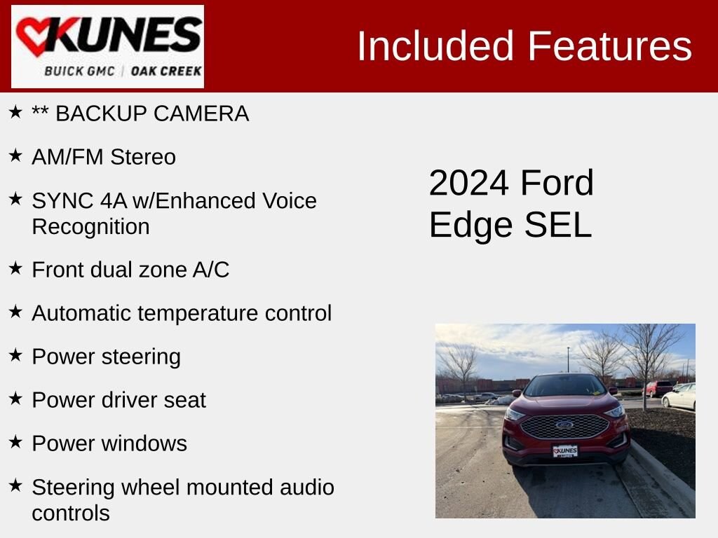 2024 Ford Edge SEL EcoBoost 2.0L I4 GTDi DOHC Turbocharged VCT 8-Speed Automatic AWD CARFAX One-Owner. 21/28 City/Highway MPG