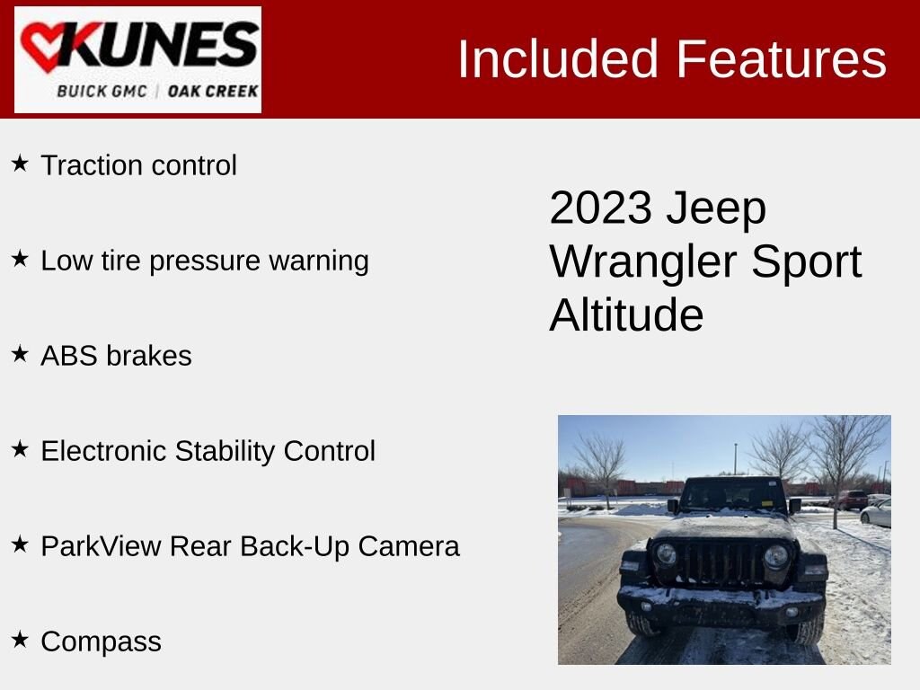 2023 Jeep Wrangler Sport Altitude 3.6L V6 24V VVT 8-Speed Automatic 4WD CARFAX One-Owner. Odometer is 6445 miles below market average!