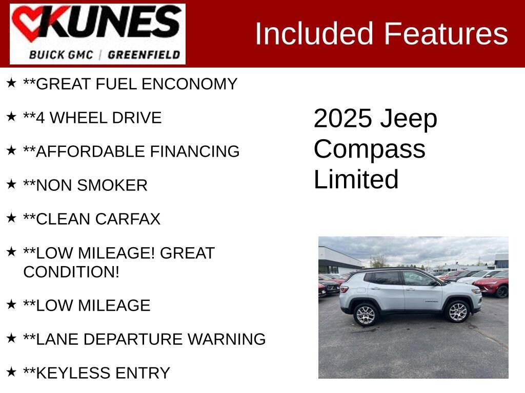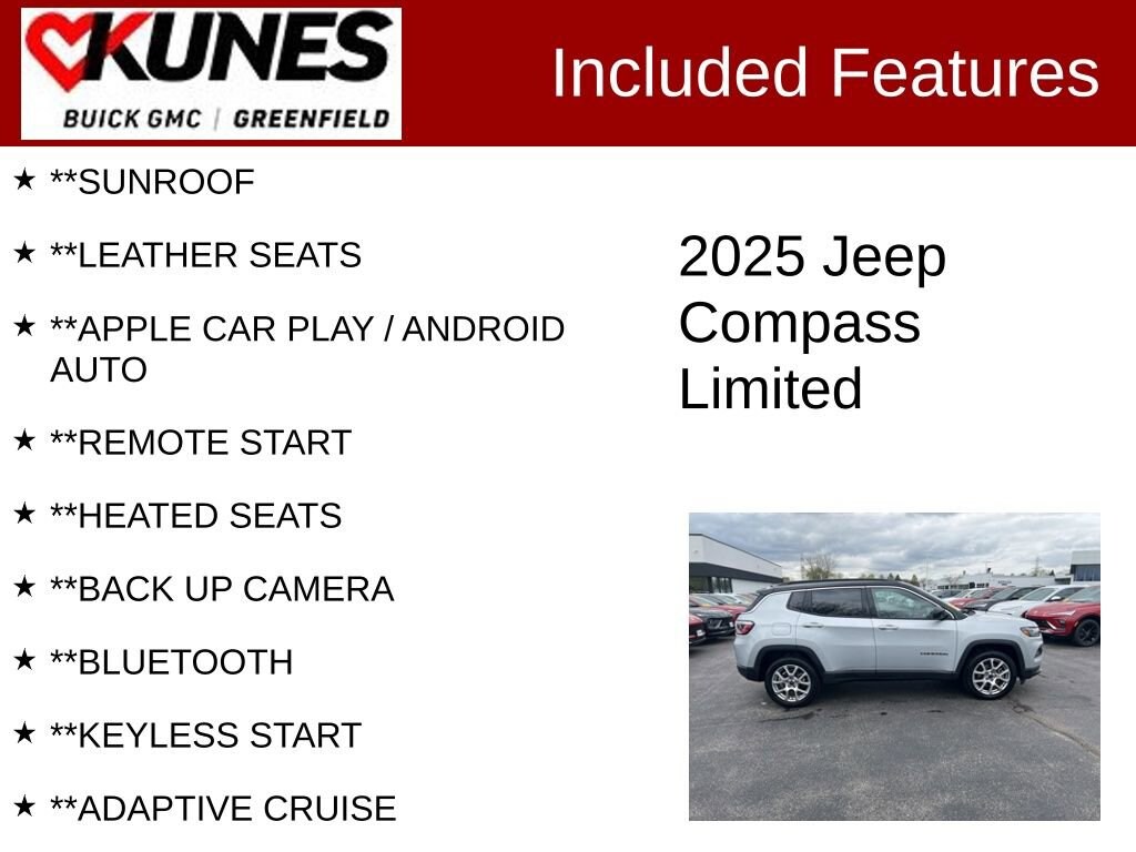 Silver Zynith Metallic Clearcoat 2025 Jeep Compass Limited 4D Sport Utility 4WD 8-Speed Automatic 2.0L I4 DOHC