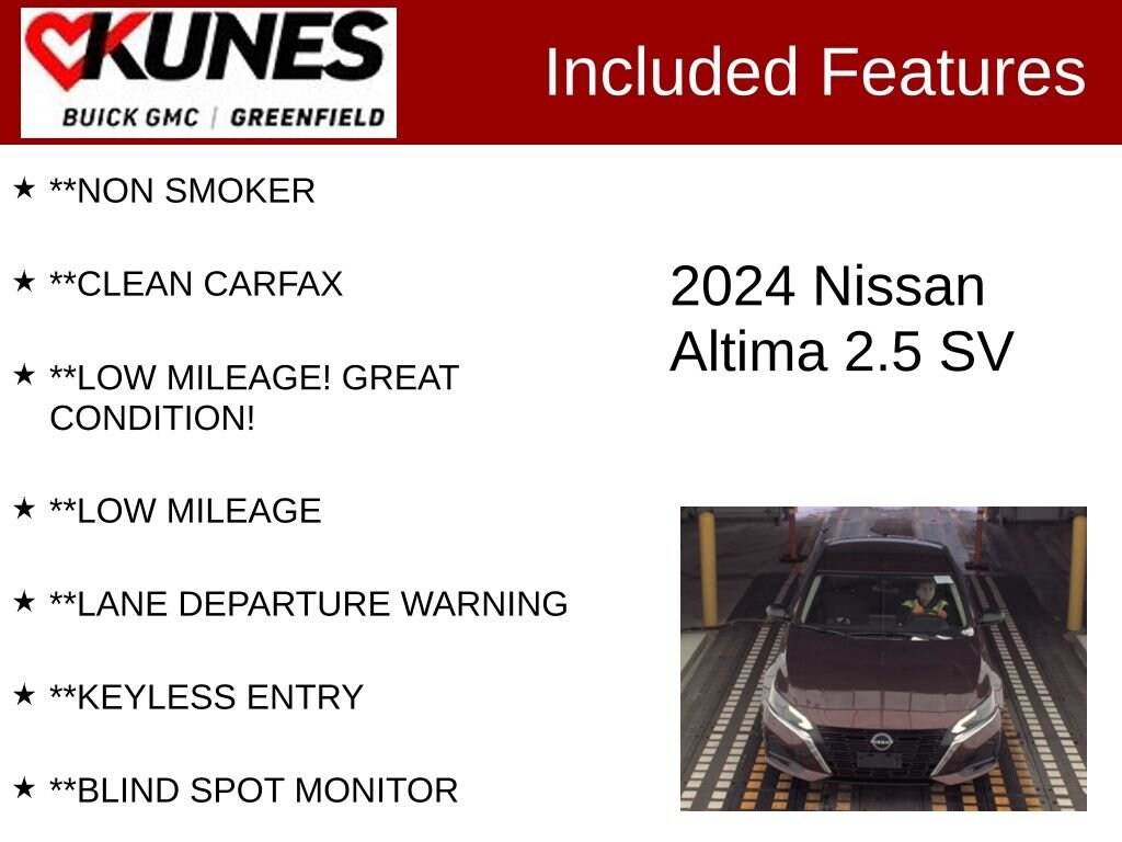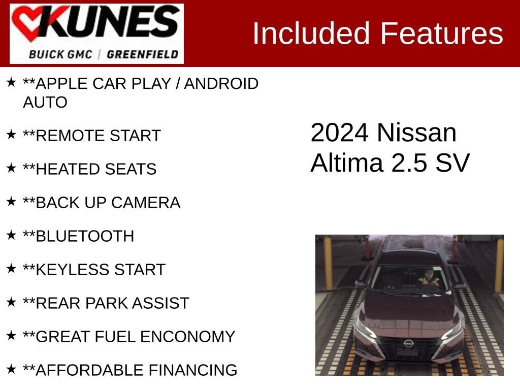 Garnet Pearl 2024 Nissan Altima 2.5 SV 4D Sedan FWD CVT with Xtronic 2.5L 4-Cylinder DOHC 16V